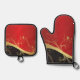 Modernes Kunstdesign in kräftigen Rot-, Gold- und Schwarzfarben. Brigheren Sie Ihre Küche mit diesem Ofen Mitt und Topfhalter Set. (Artikel können auch einzeln erworben werden.
