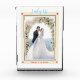 The clear, free-standing acrylic provides a modern, glass-like finish that adds depth and brilliance to your favorite wedding or engagement photo. Personalize it with your names at the bottom to create a unique Valentine’s Day gift, anniversary memento, or wedding keepsake.