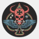 Lucky Winged Maltese Devil Skull of Spades Runder Aufkleber