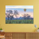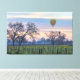 In einer ruhigen Landschaft schwebt ein gelber Heißluftballon in einem pastellfarbenen Himmel über einem Weinberg. Im Vordergrund steht der Weinberg mit Pflanze- und Blütenreihen, die gegen das sanfte Licht von Morgengrauen und Dämmerung gedämpft sind. Der Himmel ist eine Mischung aus blasser Blues, Rosa und Weiß, die eine friedliche Atmosphäre schafft. Der Ballon fügt der ansonsten ruhigen Szene eine Touch von Launen hinzu.