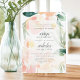 Moderne Blumen-Hochzeitseinladung in schieren pastellfarbenen Aquarellen zeigt Ihre Hochzeitsdetails in sanft grauer Kalligraphie und Blockschrift, überlagert auf einem Hintergrund üppiger abstrakter Blume in Pfirsich und Pfefferminzgrün. Dieser Stil zeichnet sich durch traditionelle Formulierungen mit den Eltern der Braut, aber können leicht geändert werden, um Ihre Hochzeit Anzug.