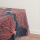Vector Muster aus Fächerkorallen in lebendiger Korallenfarbe auf dunkelblauem Hintergrund.