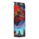 ({ AI Art }}+ Farbenfrohe Steampunk-Luftschiff schweben über mittelalterliche Stadt auf einem anderen Planeten.