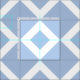 Ein cooles geometrisches Muster der ineinandergreifenden hellblauen und weißen Diamantformen. Die weißen Diamanten jeder enthalten einen kleinen hellblauen Babyblaudiamanten, machend die dominierende Farbe vom Gewebeentwurf.