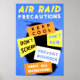 VINTAGE Kunstwerke des Zweiten Weltkriegs. Blaues Plakat für die Vorsichtsmaßnahmen von Air Raid. Es heißt "behalt cool" "schreie nicht" "renne nicht", "verhindere Störungen" und "gehorche allen Anweisungen".
