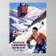 Luftseilbahn über Courchval, Mann auf Ski, Vintag Poster