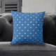 Kissen in einem geometrischen Raster aus rotierenden, dünnen weißen Formen auf einer königsblauen Grundfarbe.