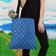 Ladys Large Shoulder Bag in geometrischem Raster von rotierenden, dünnen weißen Formen auf einer königsblauen Grundfarbe.