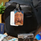 this is a lovely luggage tag with the unique image of the brown bloodhound from the oil painting done by YaneyaArt