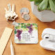 Schlüsselanhänger mit inspirierender Zitat-Schrift zeigt eine wunderschöne Naturwasserfarbe mit lila Weintrauben, die an einem Wein hängen. Es enthält einen Teil des Parabels Jesus, der in Bibel Verse Luke 5:37 gelehrt wurde: "Niemand bringt neuen Wein in alte Weinkeller."