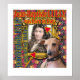 Der kleine Hund, in den Originalwerken von ZoeSPEAK auf diesem Poster, ist ein italienischer Greyhound vor einem Portrait des Komponisten Jean-Baptiste Lully. Der zweisprachige Hund sagt uns auf Englisch und Französisch, dass Lully in Italien geboren war.