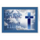Beau ciel bleu de nuages avec message religieux et croix. Conception et photographie par Amber Sharp