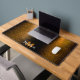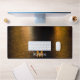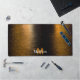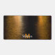 Lumières Abstraites mer brillant bronzé Monogram Desk Mat. Tapis de bureau cool unique pour bureau, chambre, travail, atelier, salle de jeux.. Personnalisez avec votre initiale et votre nom personnalisés. Photo des lumières scintillantes de nuit reflétant la mer dans des couleurs brillantes en bronze noir et or.