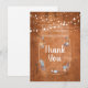 Carte de remerciement de lumières de corde de pot de maçon rustique, avec des lumières de corde au-dessus d'un pot de maçon artistique rempli de votre message de remerciement et de fleurs délicates éparpillées sur un fond texturé rustique. Une façon parfaite de dire merci ! Conçu par Thisisnotme©