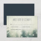 RSVP de mariage rustique avec des arbres épicéas décorés de lumières féeriques.