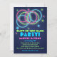 Une invitation ludique pour une fête dans le noir. L'invitation est muni d'autocollants et de bagues. Glow in the Dark Party est en grandes lettres brillantes. Parfait pour toute sorte de fête néon et il est entièrement personnalisable.