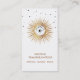 Entwurfsgröße: Vertikale Standard-Visitenkarte. Ein Ausbruch von YELLOW GOLD PEACH SEPIA Heilenergie umgeben von Golf Foil Strahlen der Sonne und Phasen des Mondes in Schwarz.