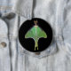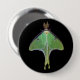 Dieser Knopf zeigt die unglaubliche Luna-Motte, eine Limon-grüne, nearktische Sättigungsmotte in der Subfamilie Saturniinae. Mit einer Spannweite von bis zu 1,5 cm zählt dieses schöne Wesen zu den größten Motten Nordamerikas. Diese erwachsene Motte ist gerade aus dem Kokon hervorgegangen und wird auf der Rinde eines Baumstamms zum Trocknen und Verhärten gewartet. Die Erwachsenen essen nicht oder haben keinen Mund. Sie leben nur eine Woche lang und tauchen als Erwachsene auf, um sich zu paaren. Mit der Kalkfarbe und den charakteristischen Augentönen ist dies ein sehr geheimnisvolles, magisches Wesen.