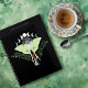 Eine große grüne Lunamotte mit Mondphasen in schwarzem Hintergrund