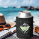 Eine lebendige grüne Lunamotte ist umgeben von Mondphasen und üppigen grünen Blätter auf schwarzem Hintergrund.