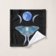 Luna Moth dans un style aquarelle sous une lune bleue et deux lunes de croissant sur un ciel noir avec une initiale personnalisée.