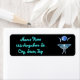 Luna Moth in Aquarellfarbe unter einem blauen Mond und zwei Halbmonden über einem schwarzen Nachthimmel und einem Ort für einen individuelle Name und eine Adresse.