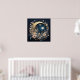 "Lunar Garden Wreath" ist ein atemberaubendes Design, das himmlische und botanische Elemente kombiniert. Ein wunderschön verzierter, goldfarbener Halbmond kreuzen einen hellen Vollmond und einen Sternenhimmel. Die Szene wird von einem üppigen, blühend Kranz mit zarten blauen, cremefarbenen und rosa Blume umgeben und schafft so ein wirklich magisches und elegantes Poster.