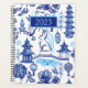 Ein skurriles Jahr des Kaninchendesigns, das das kommende chinesische Mondneujahr 2023 feiert. Diese handgezeichnet Abbildung zeigt Kaninchen, Blume, Laternen, Schmetterlinge und Wasser in einem chinoiserie-artigen Design.