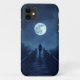 Ein faszinierendes Gehäuse-Design mit einer einzigen Figur, die auf einer Holzbrücke unter einem leuchtenden Vollmond stehend ist, Set gegen einen tiefblauen Nachthimmel - perfekt für diejenigen, die Geheimnisse, Einsamkeit und künstlerische Eleganz in ihren alltäglichen Accessoires schätzen.