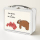 Boîte à lunch avec ours mignon avec framboises et texte MANGER FRUITS ET ÊTRE SAINS
