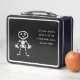 Boîte à lunch avec squelette drôle sur arrière - plan noir