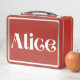 Boîte à lunch en métal Alice. Pour un Alice, cette mignonne boîte à lunch dit Alice dans une police contemporaine. Personne ne s'étonnera de savoir qui est la boîte à lunch !