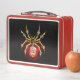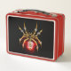 Araignée mécanique à vapeur avec or, engrenages en laiton et lampe en verre rouge sur un arrière - plan noir. Style Steampunk.