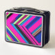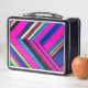 Ce design attrayant présente un agencement dynamique de formes géométriques dans une palette vibrante de rose, bleu, vert et noir. La composition crée un sentiment de profondeur et de mouvement.