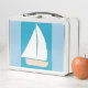 Cette boîte à lunch blanche est conçue avec ma représentation d'un voilier blanc sur un arrière - plan bleu et turquoise.