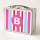 Lunch Box Bright Pink and Blue Candy Stripes Monogram