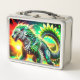 Cette boîte à lunch a une créature d'imaginaire dessus.