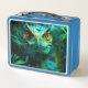 Cette boîte à lunch a un dinosaure représenté dessus.