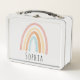Cette boîte à déjeuner personnalisée pour filles dispose d'une aquarelle rose boho arc-en-ciel, et de l'espace pour ajouter un nom dans la belle typographie. Le design parfait coloré et fantaisiste pour tout enfant ou adulte aimant l'arc-en-ciel, un grand ajout à la fournitures scolaires!