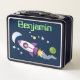 Explorez l'espace avec ce joli design mettant en vedette un garçon dans un navire de roquette dessiné en amusant dessin animé style d'illustration!