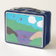 Diese Lunchbox wurde mit meiner Darstellung einer Bergsee-Szene mit Ballons und Wolken entworfen.