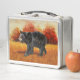 Un mignon ours noir qui se promène dans un champ de feuillage de couleur automne.