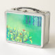 Paysage abstrait moderne et verdoyant avec quelques arbres éloignés, un hérisson et des oiseaux. Art original de Nic Squirrell.