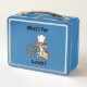 Un mignon lapin cuisine des carottes sur le poêle. L'expression demande "Qu'est-ce que pour le déjeuner"? Customisez l'arrière de la lunchbox et la couleur qui est maintenant bleue.