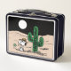 Regardez Spike assis à côté d'un cactus dans le désert la nuit.