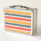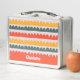 Bright, playful, and full of charm, this lunch b0x features hand-painted scalloped rows in warm coral, sunny mustard, and deep green on a soft blush background. The rhythmic arches create a cheerful, modern-retro look that feels both cozy and celebratory. Personalize it with your name today!