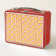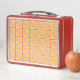 A yellow and pink pattern lunchbox , bold colourful and geometrical