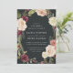 D'élégantes invitations à des mariages fleuris ou des mariages d'automne ou d'hiver vous offrent des détails encerclés de roses d'aquarelle, de mamans et de verdure dans des couleurs d'automne rustiques, comme la pêche, l'ivoire, le rougissement, le bordeaux et le vert sur un riche arrière - plan noir. Les cartes s'inversent vers un câble profond subtilement taché.