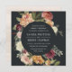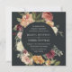 Notre invitation à un mariage dans un format carré unique encadre vos détails mariages avec un cercle de roses et mamans aquarellés peints dans les tons d'automne de bordeaux, marsala, rose roux et pêche, avec feuillage vert foncé et feuilles. Un choix élégant pour les mariages d'automne ou d'hiver, avec un arrière - plan hors-noir dramatique et des couleurs riches.