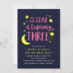 Lune rose et étoiles 3e invitation anniversaire